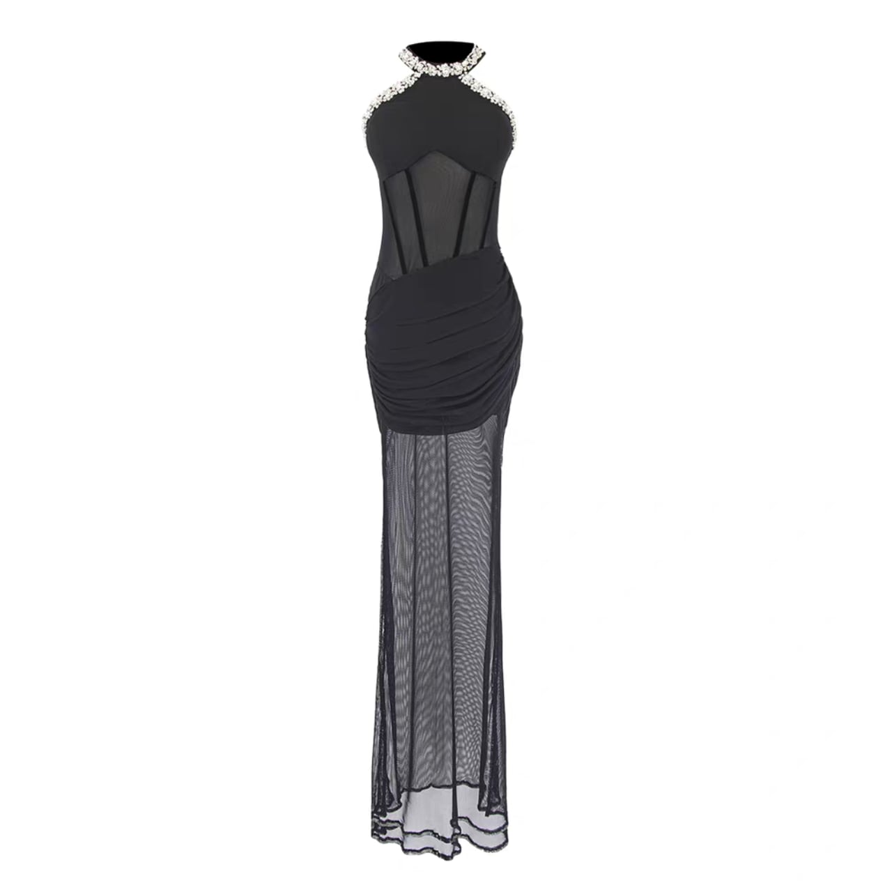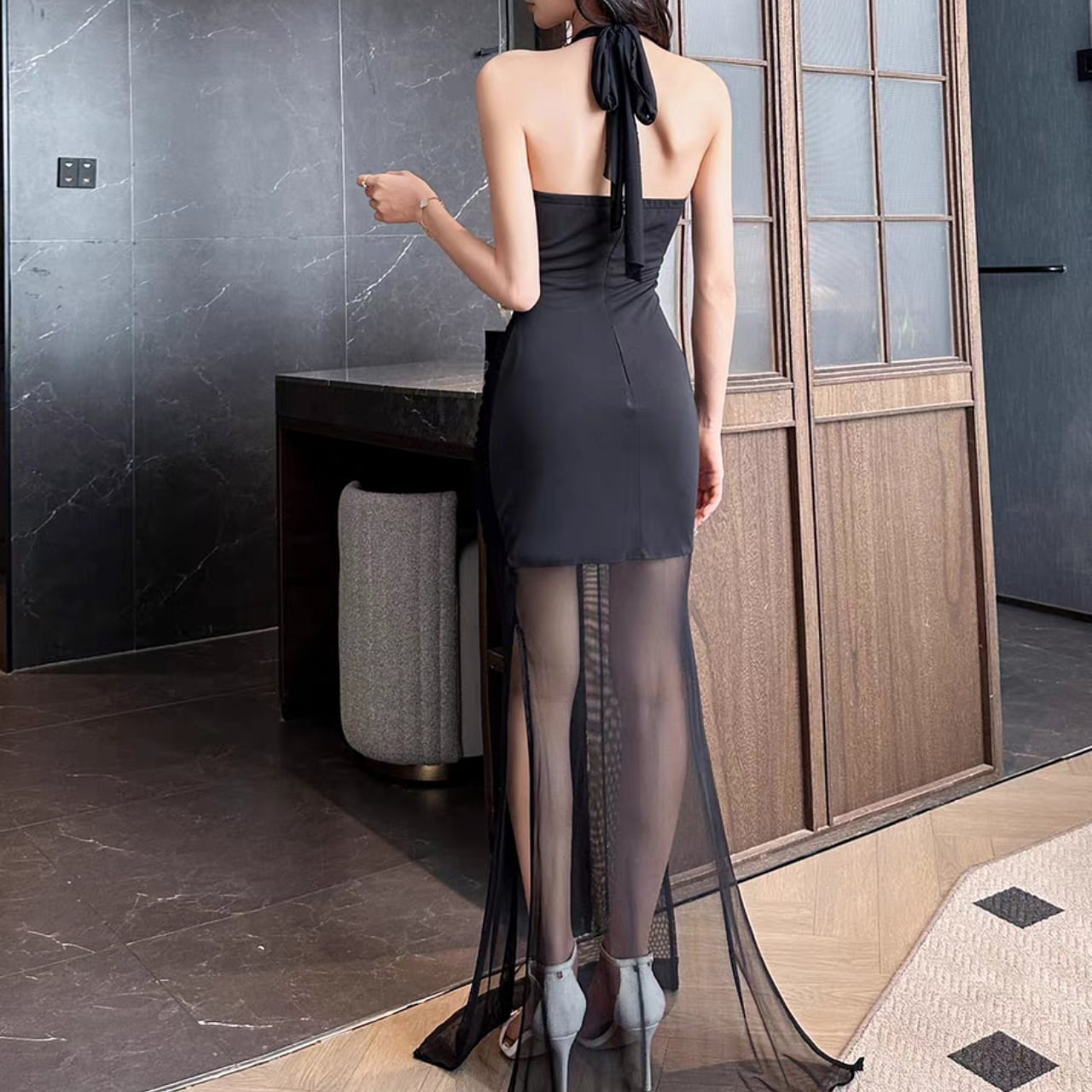 ホルターネックシアーレイヤードミニドレス◇MD0215