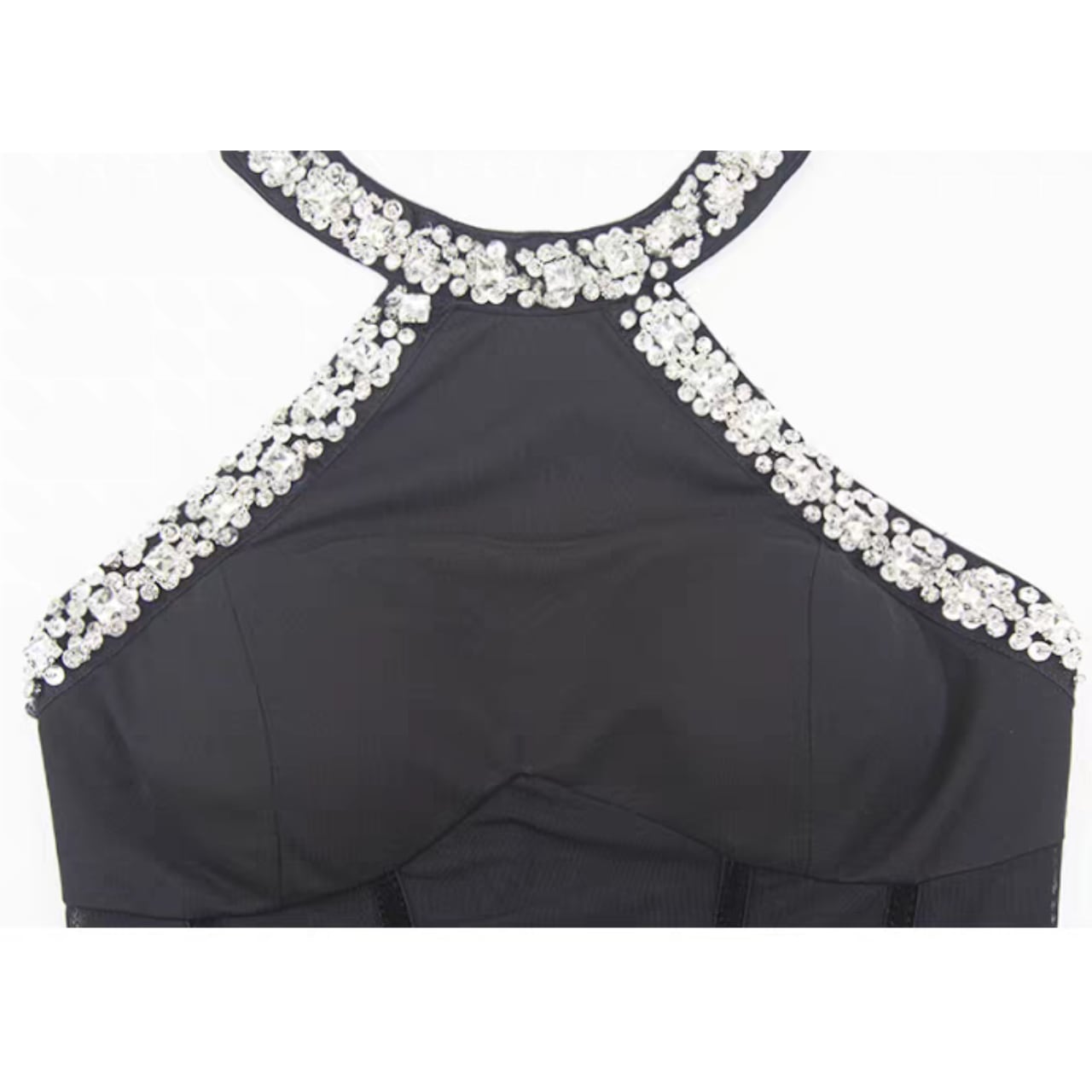 大胆かつ繊細なデザインが光る、ホルターネックミニドレス。