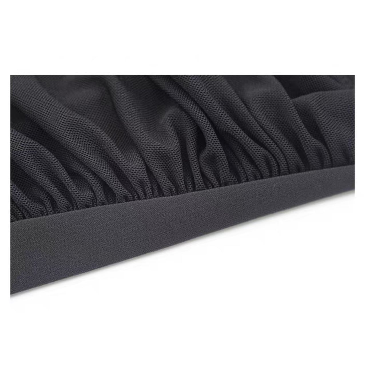 ボディラインにフィットするミニ丈と、足元を軽やかに見せるシアー素材のマキシスカートの組み合わせが、トレンド感あふれる着こなしを実現。